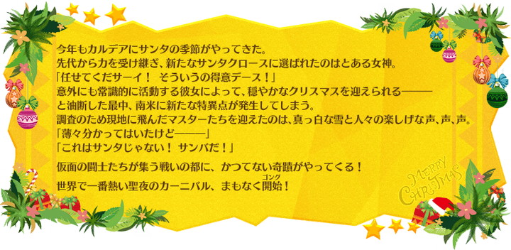落ち着いて聞いてください。男のサンタは現状1人でセイバーと言いながら拳で戦います。あとはわかりますね?>>920