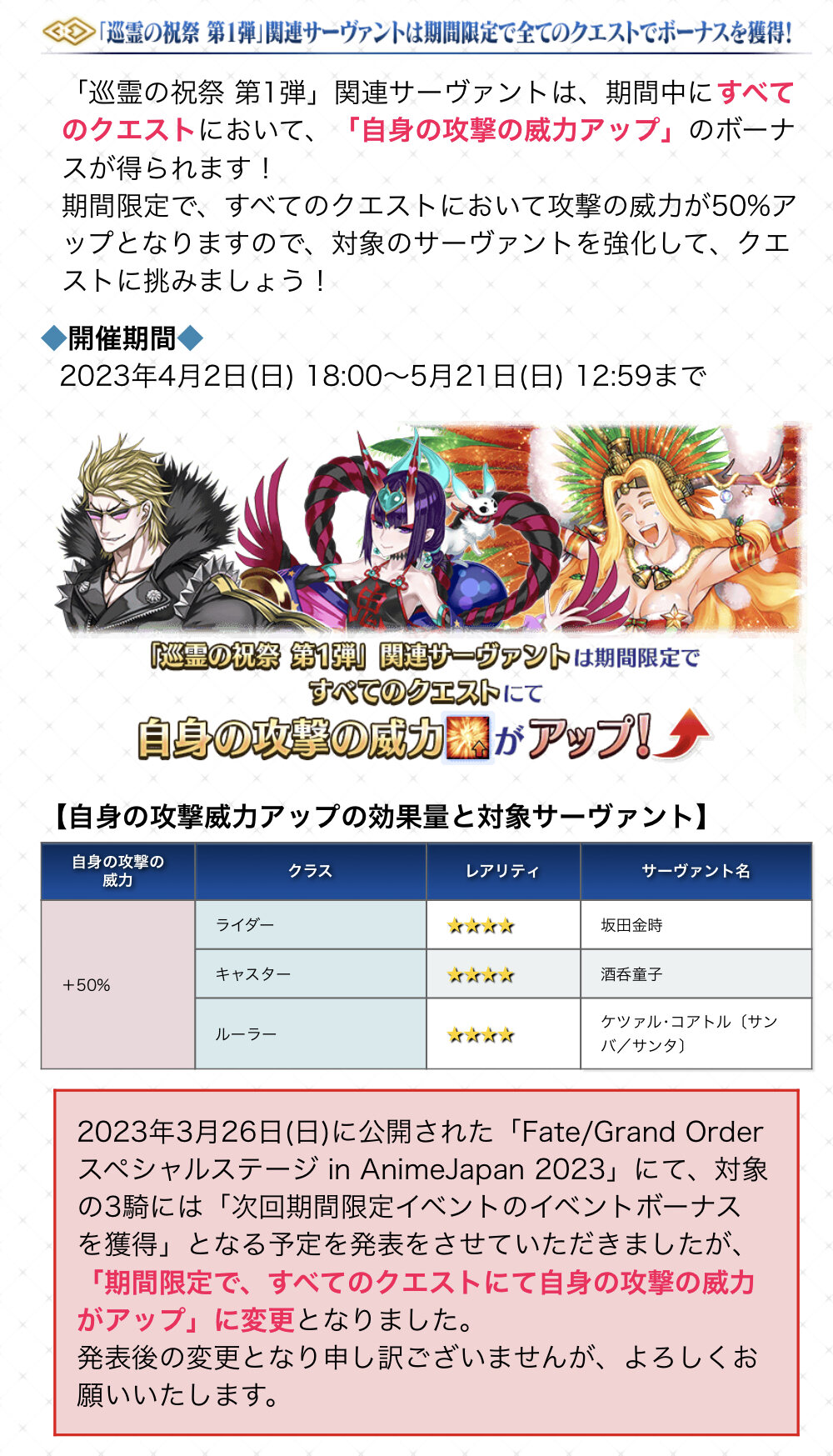 コラボイベでは今回の復刻配布鯖は攻撃力アップボーナス適応されるってことでいいんだよね?