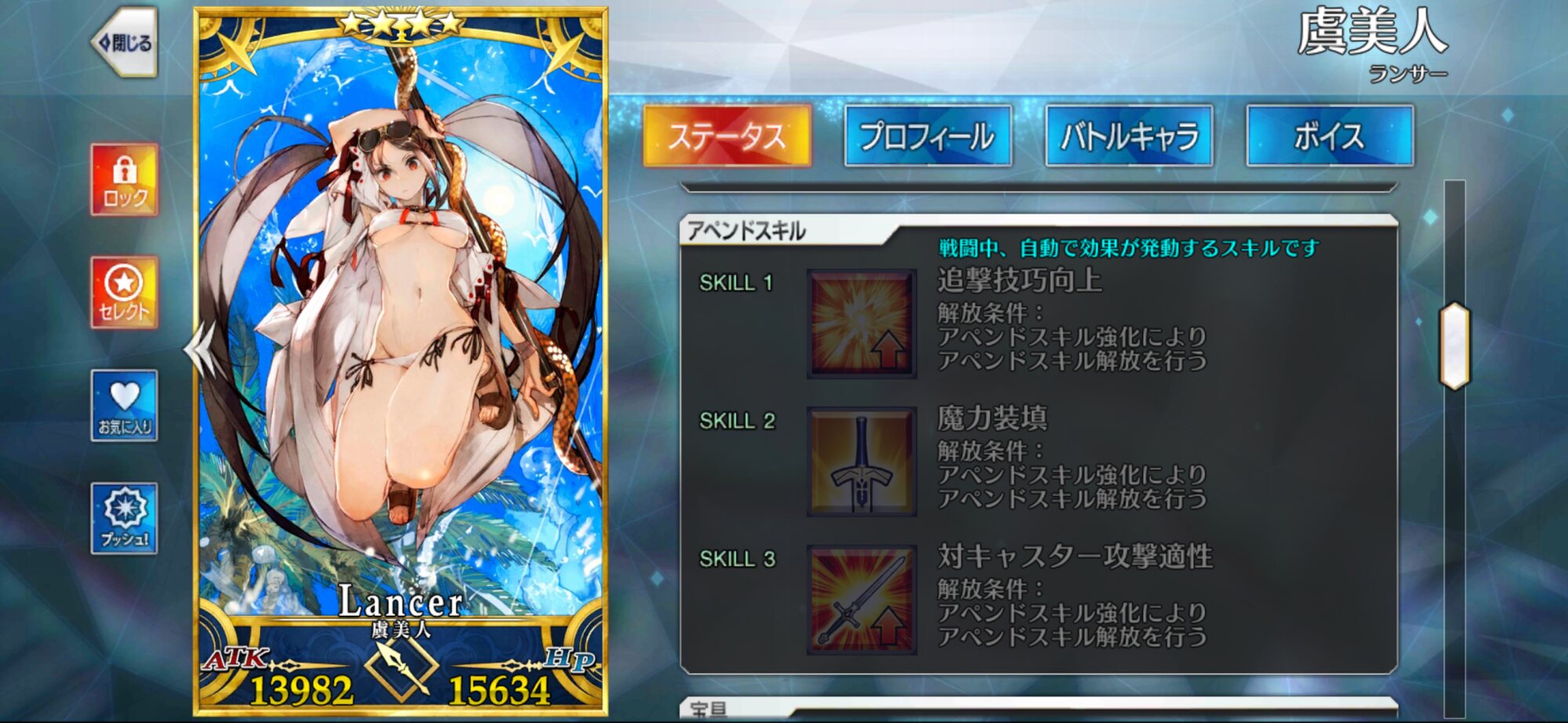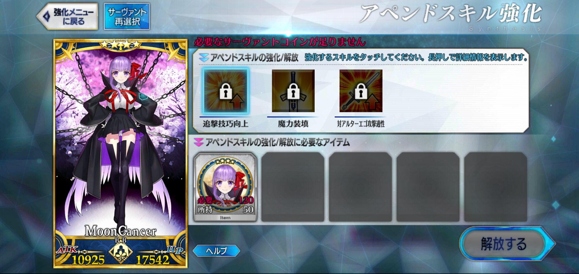 強化クエストはともかく、幕間はシナリオも一から作成しないといけないからなあ…LV.80、宝具5、アペンド全開放に必要な巡霊の葉は2900枚かな?(絆5前提)