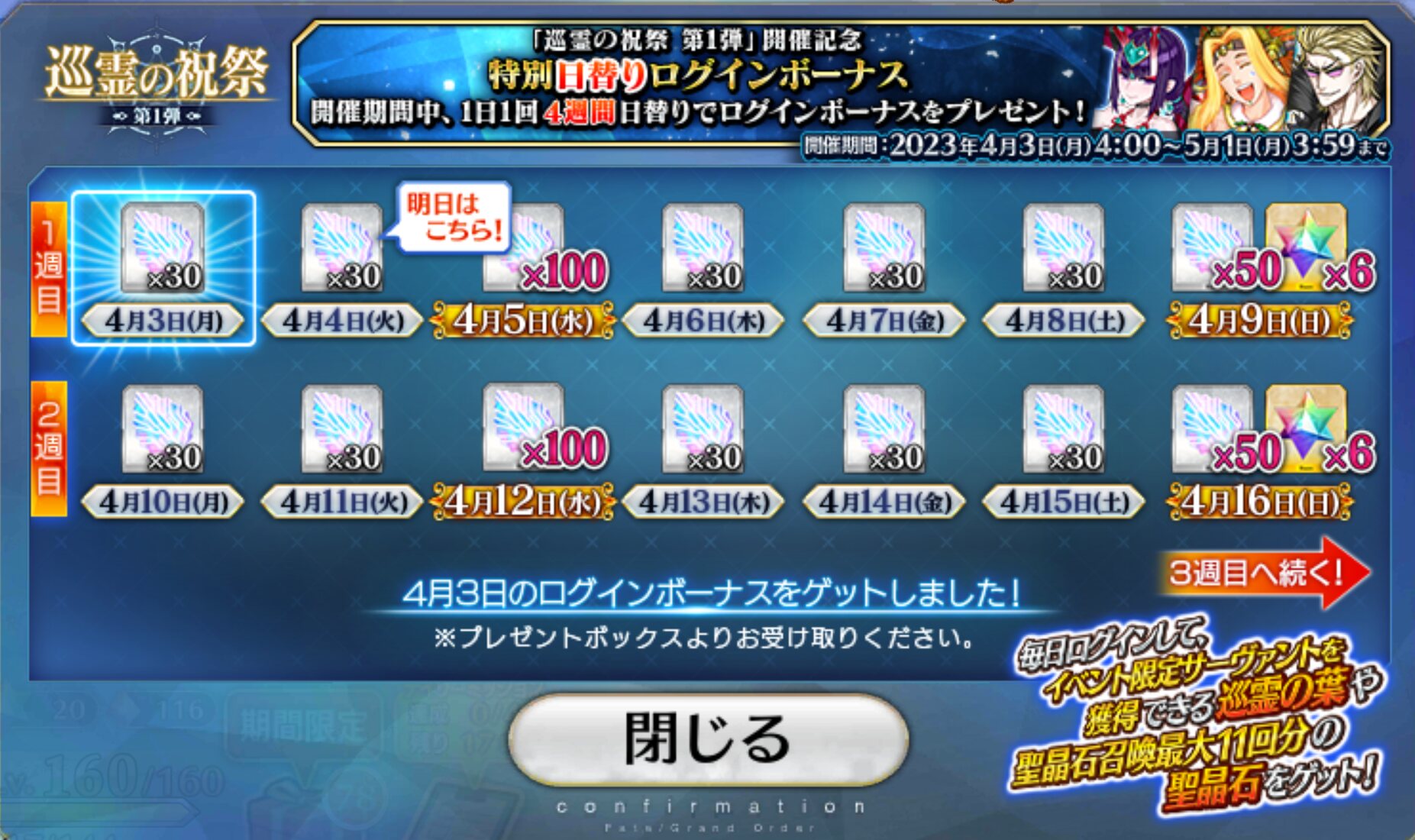 昨日更新されてからログインした記憶がなくて恐る恐る入ったら無事にログボ七日目の呼符が貰えてホッとしたわ
