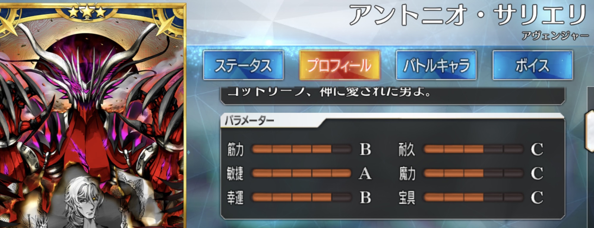 史実のサリエリさんめっちゃ良い人なのにアマデウスモチーフのサリエリさんでまた風評被害広がって可哀想やなとか思ってたら幕間でバグって生前の性格取り戻して草。史実のサリエリさんは褐色に黒髪らしいのよね。
