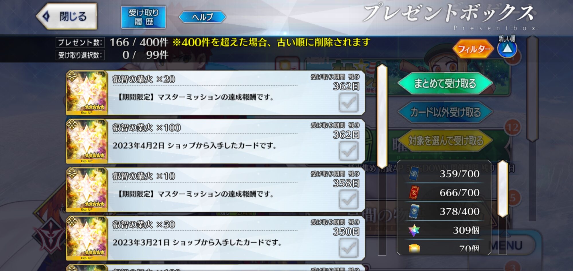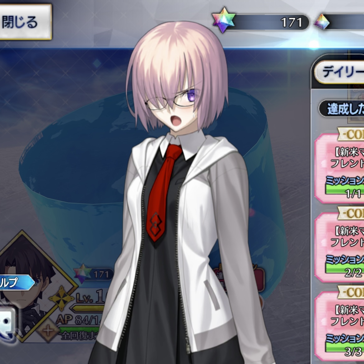 コラボとかイベントごとでマシュの衣装が増えないからかな巡礼の葉手に入れるために一年ぶりくらいにマスミの限定欄開いたわ、今思うと時間経過で消えるミッションあったら絶対見逃してたな無いとは思うが