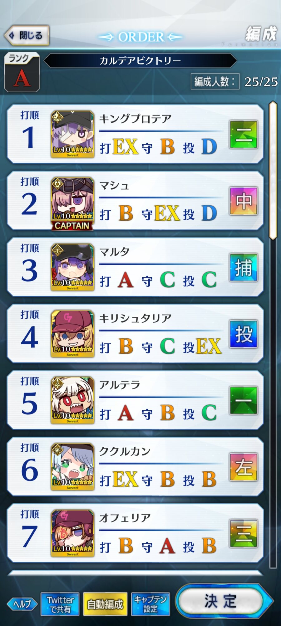 建てられたら建ててくるよ……でも、妖精騎士杯や今回のイベントの変則みたいに、秩序特効が効いてくる場面もあるので上げといて損はないとおもう。