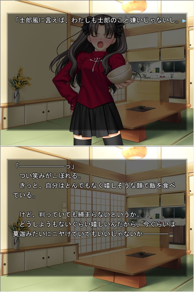 そこで、こうしてお出しされた衛宮邸での士郎と凛の穏やかで暖かな団欒。