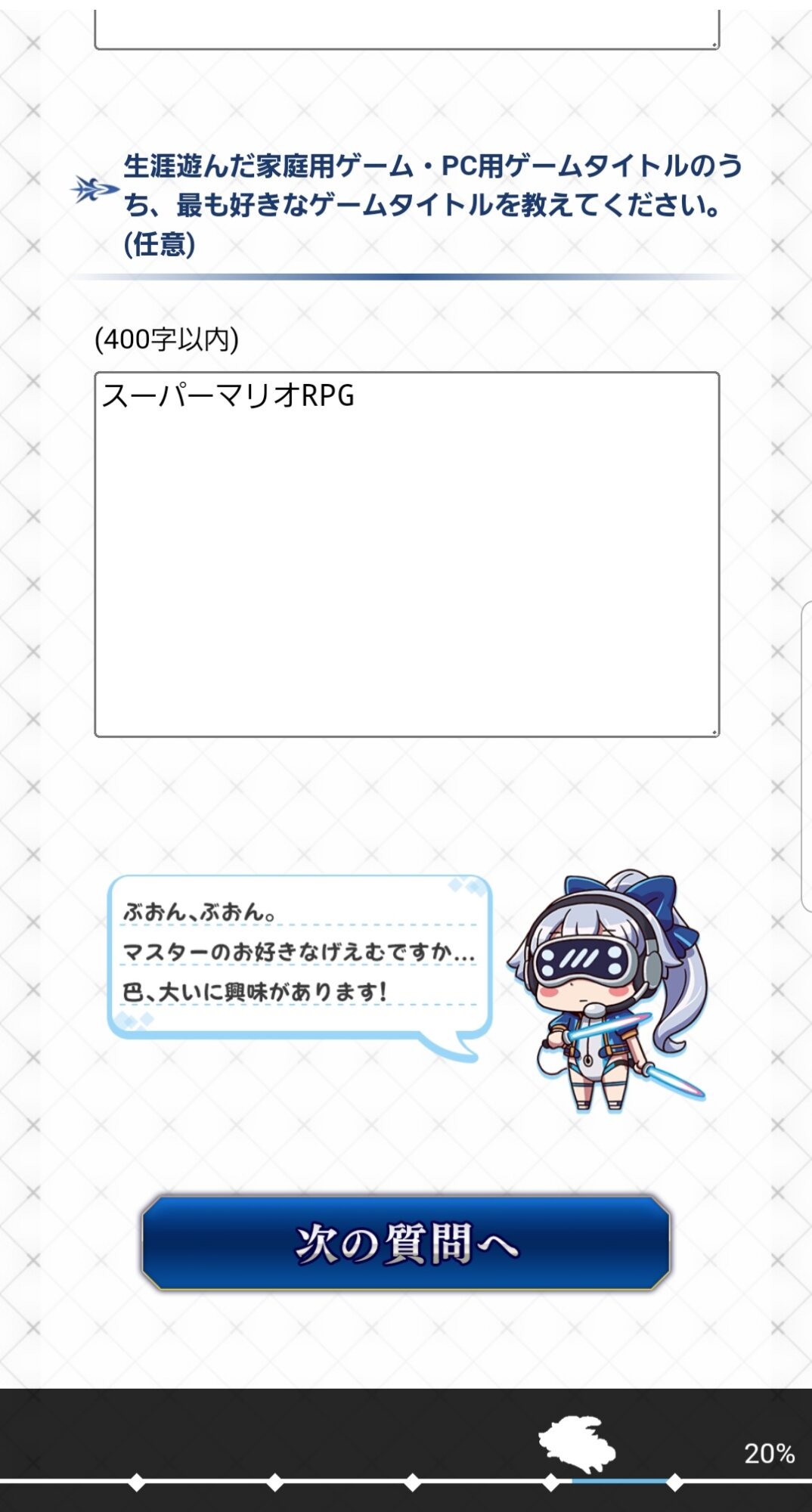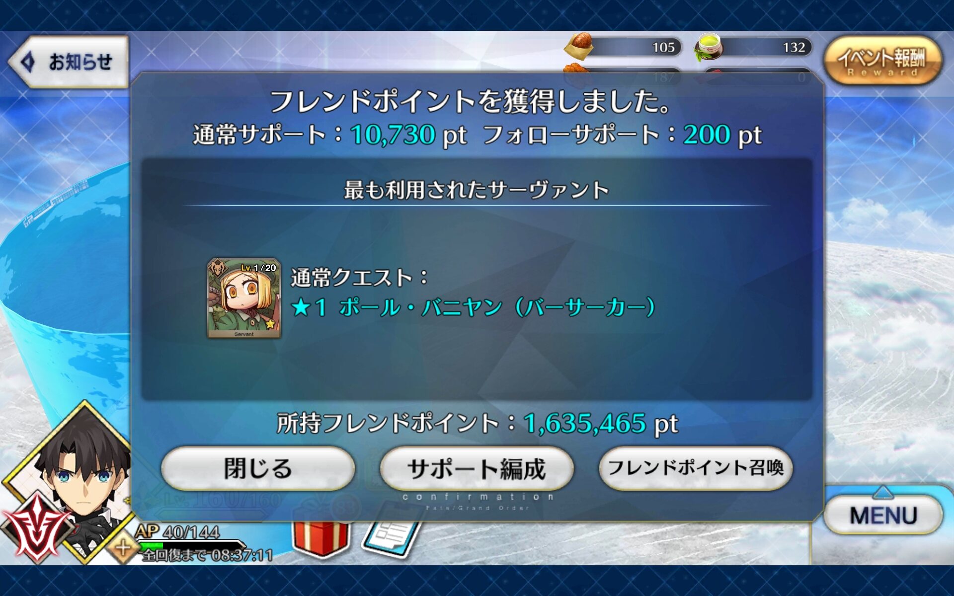 無料のコンティニュー手段なら令呪があるしね。……7章だと最初以外つかえないんだけどさ……>>928