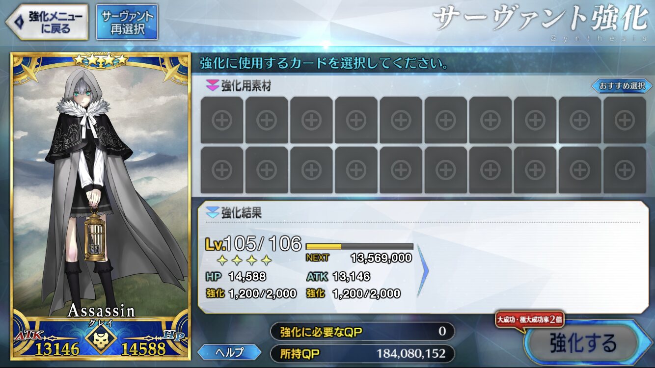 初めてやる時に自分のペースを確認してからおやり、出ないとバテるよ足りなくなりがちなスキル石を集めまくるいい機会だし、120作るためには種火も山ほど必要だし