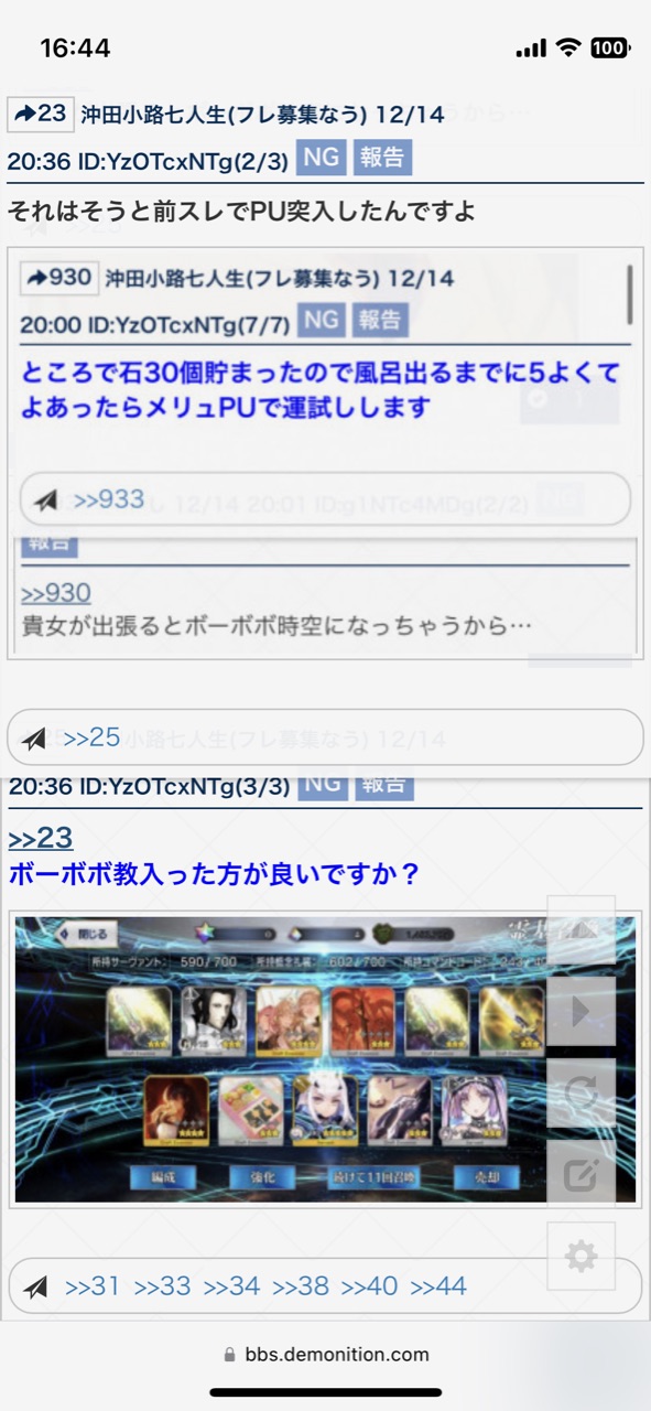ガチャ報告スレッドその8 https://bbs.demonition.com/board/9500