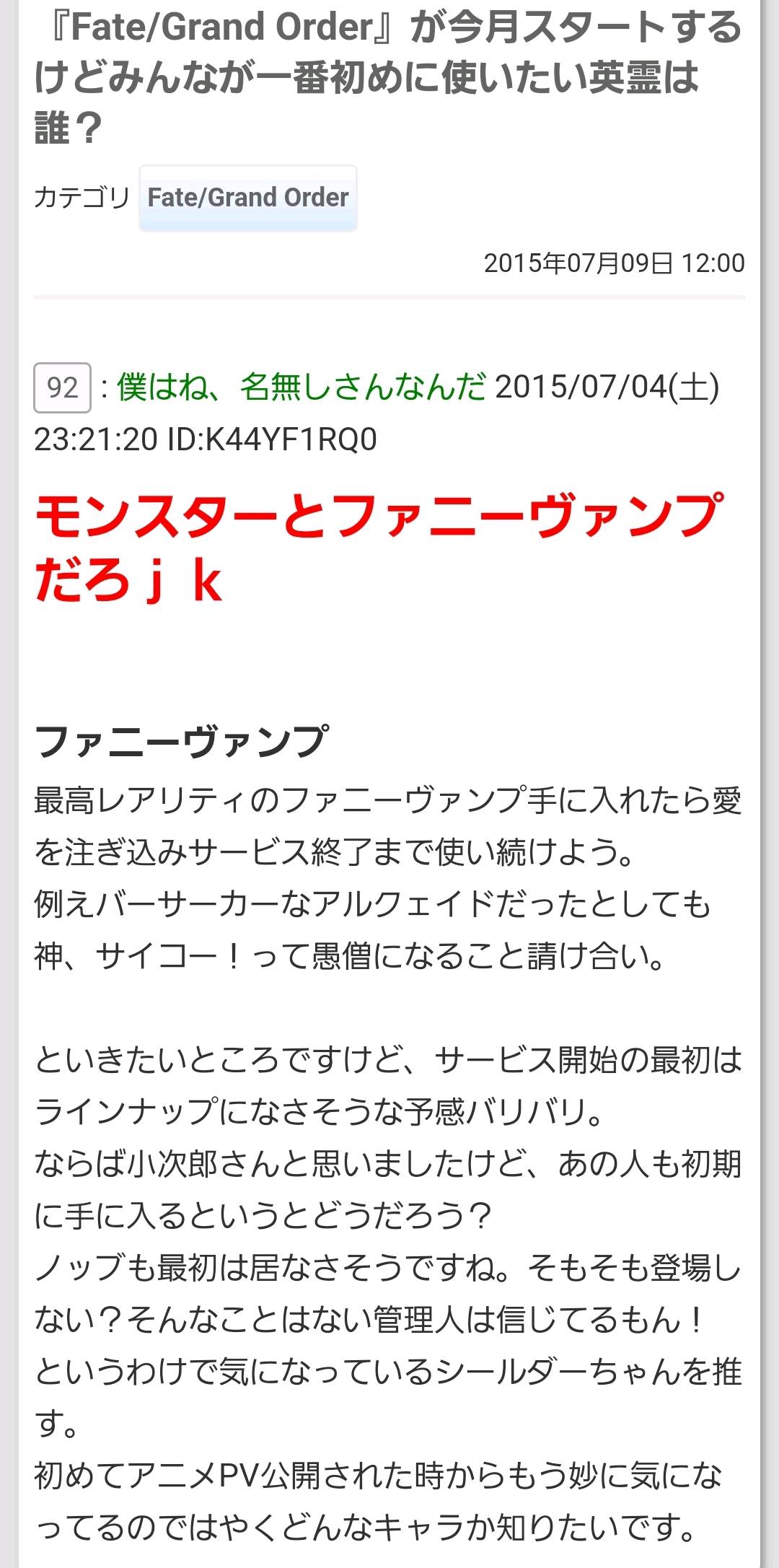 R18関連話題、よくてよ無しのガチャ結果、実装から二週間以内のシナリオ及び開催期間中のイベント内容、進行度依存の報酬、最終再臨や霊衣解放の画像や話題は専用スレにてお願いします。