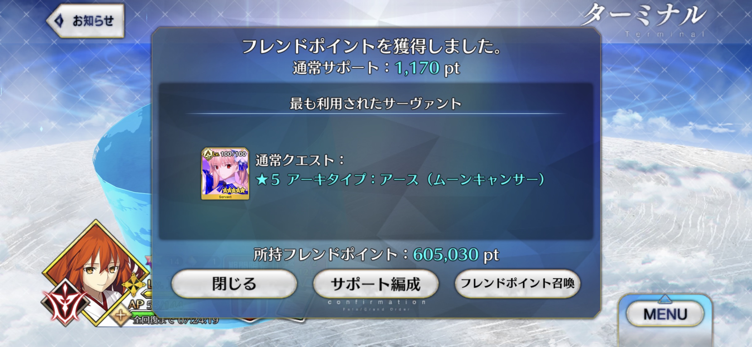 達成確認ありがとうございましたティアマトスキル3(全体回復+NP小アップ)は凸でチャージ2か、超短い。