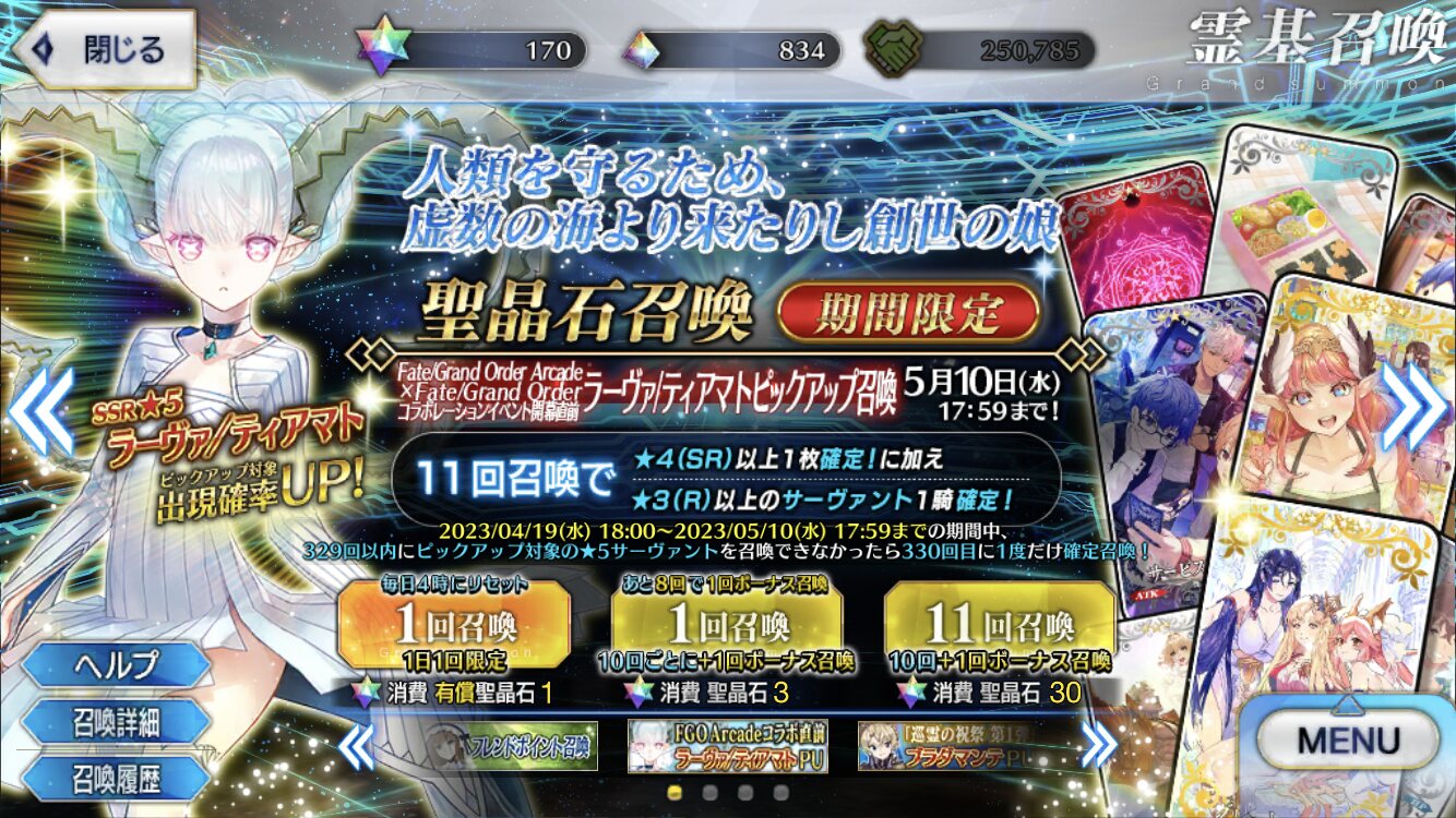 けど実装待ちの奴ら(坂上田村麻呂、ベイリン、etc…)に備えて石貯めとかないと………