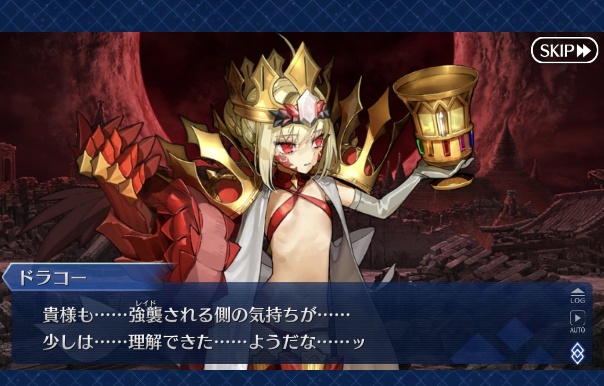 自分が言いたかったのはギルガメッシュのモチベの話ではなくて、ギルガメッシュがドラコーに掛けた言葉から感じたドラコ―の状態について。
