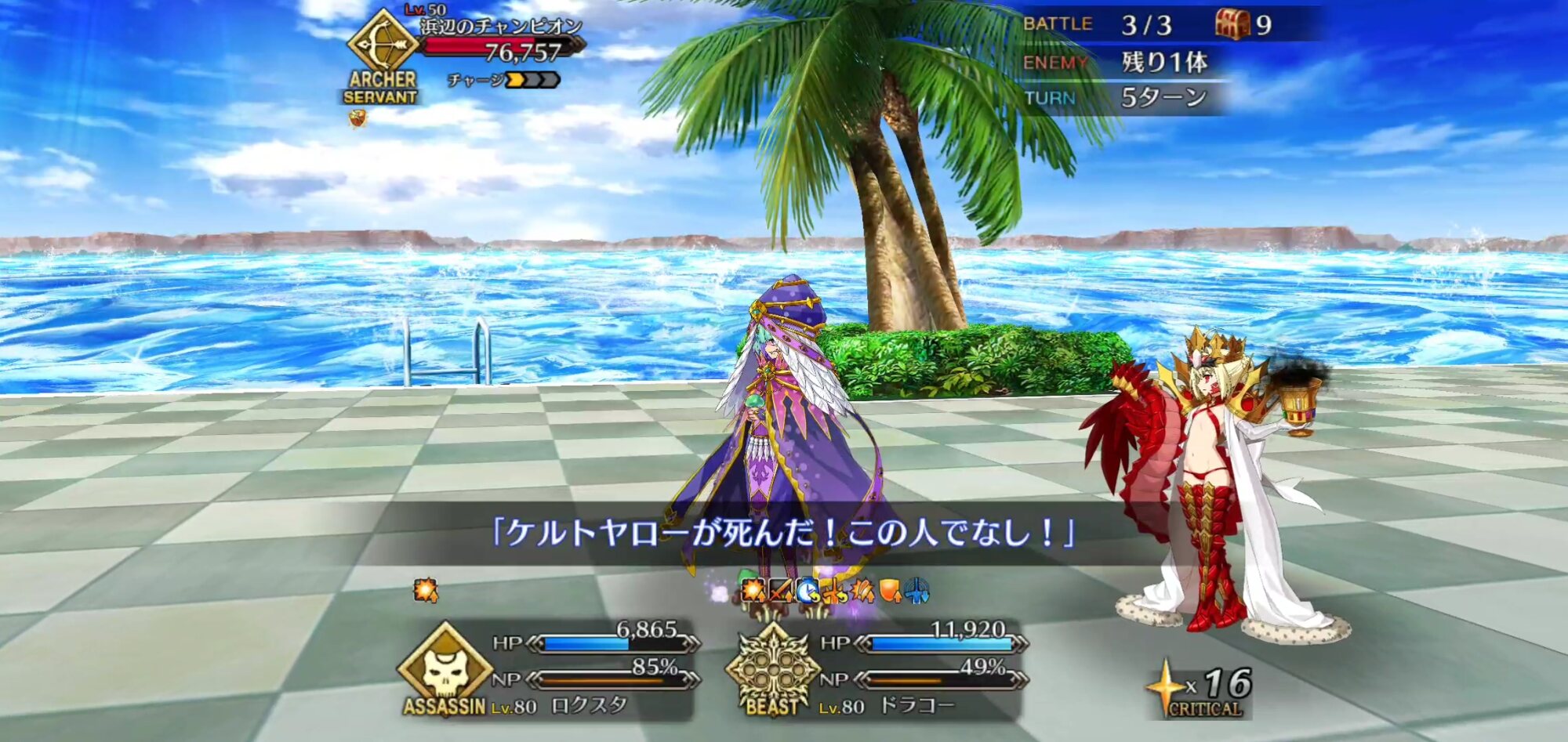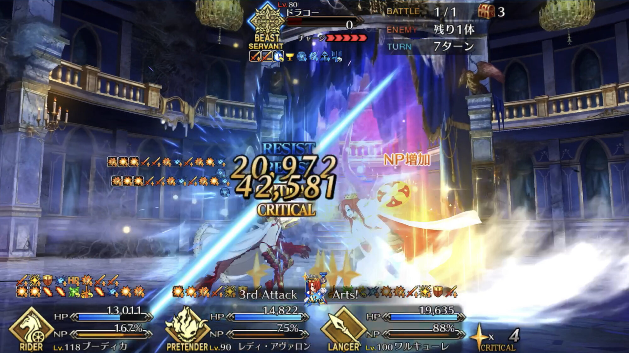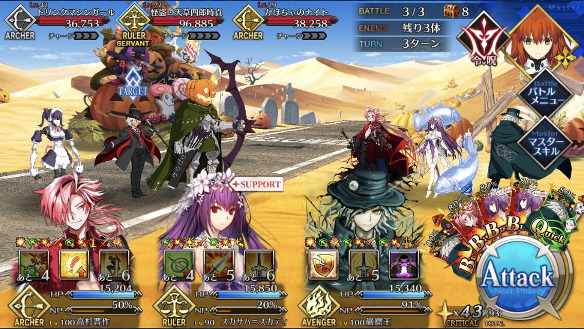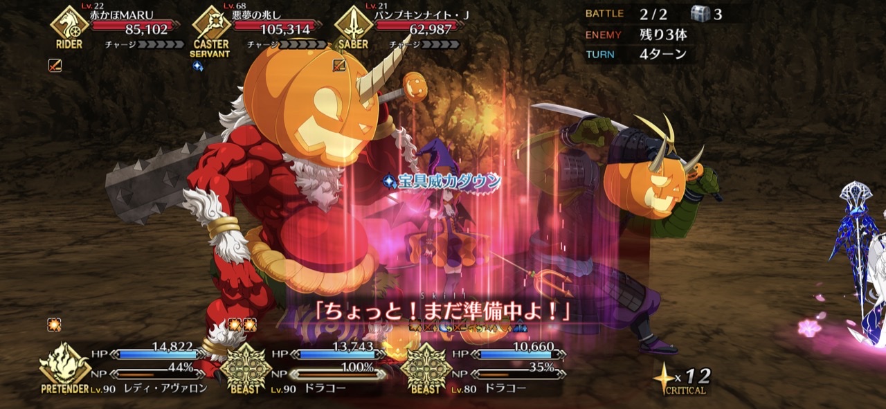 相手を宝具ダメージで倒し切っちゃうと確定で4が流れると思う。>>87