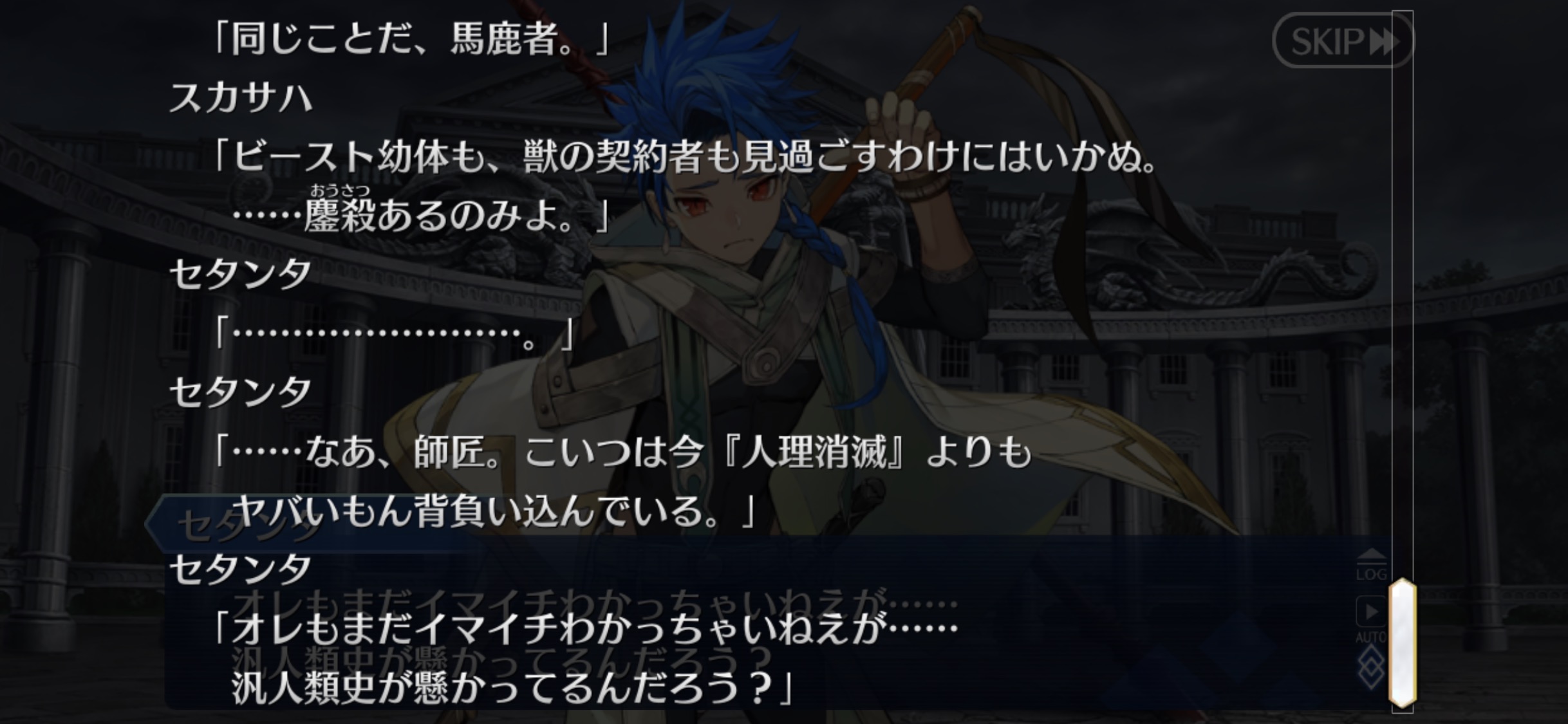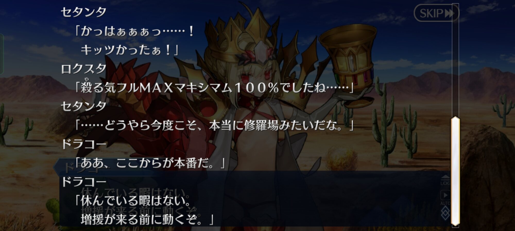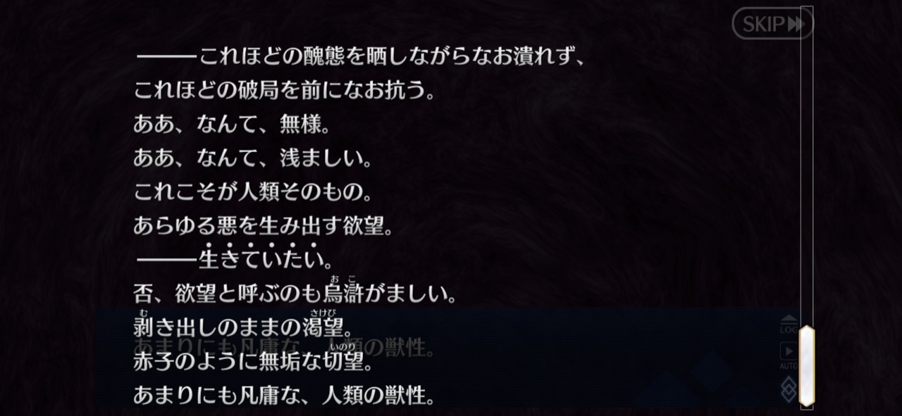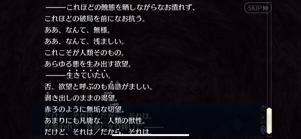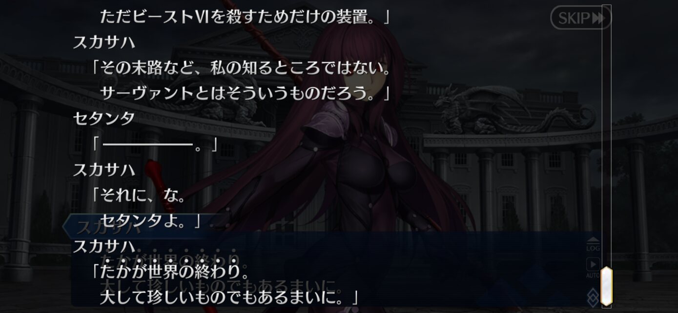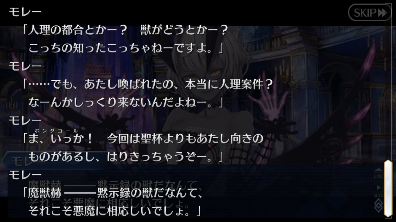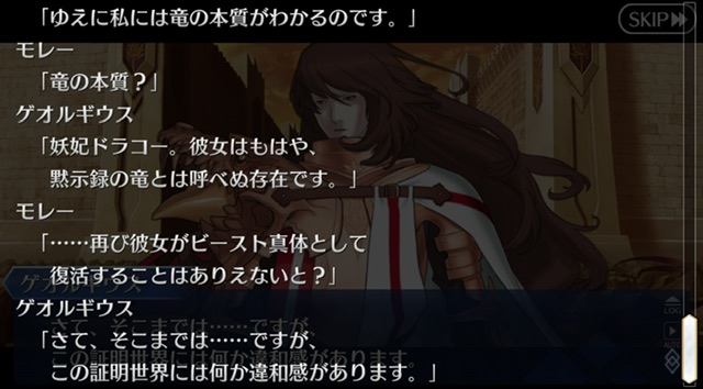 威厳を守ろうと考えて動き始めるとそこにいるのは獣じゃなくて只人な感じ今回のシナリオラスアンオマージュが目立つけどもしかしてACの村正イベでアーケードぐだ(救世主)とアルターエゴドラコーが証明世界リリムハーロットと縁を切ったのってラスアンの覚者がラスアン宇宙から去った話のオマージュ…?