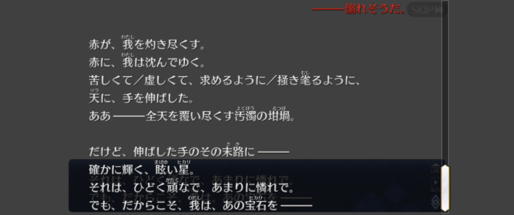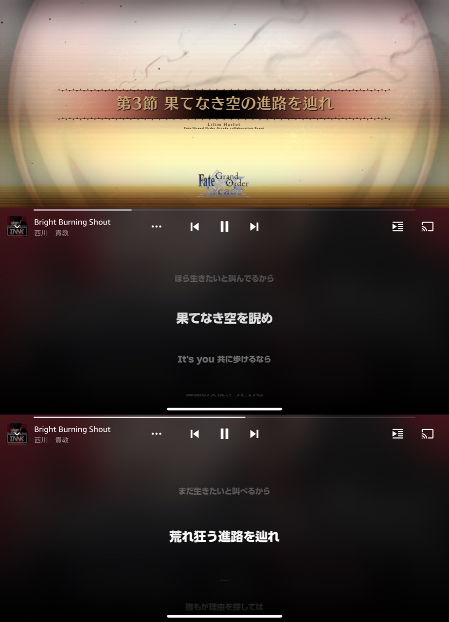 割とこの歌詞直球なストーリーかも?無常すぎる(ビーストの愛と人類は相入れない)世界でも声に出した希望(ビーストとだって共に歩める)を真実に変えようか(ビーストクラスの召喚)的なビーストが討伐されて弱毒化された残滓が元ビーストたちだと思ってるから、ドラコーがビースト霊基で来てる以上こちらの世界ではビーストの討伐は行われないんじゃないかと思ってる。